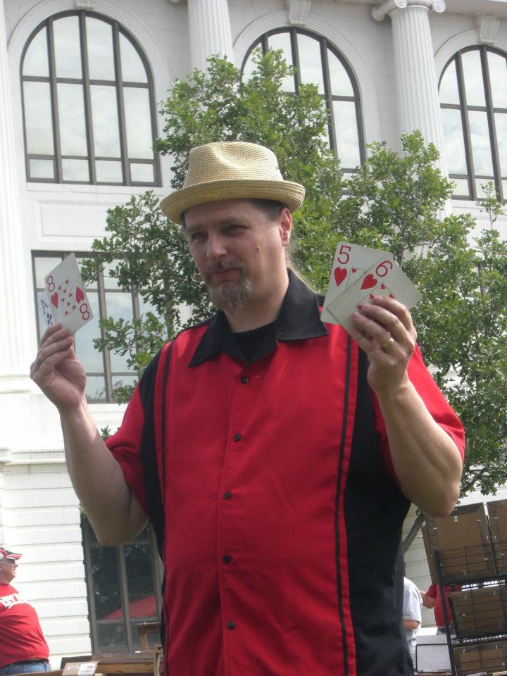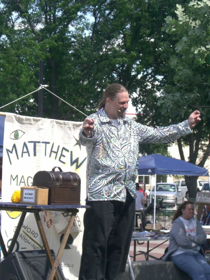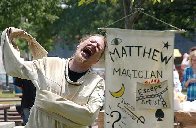 Picture Gallery I do perform at events beyond renaissance festivals… 2013 Phantom’s Feast – Circus of Darkness Council Bluffs and Central City KCRF Circa 1999 Puppet TheaterFind the Queen Working with Rod Sipe Voodoo Revue 2006KC Fringe Fest 2009KC Fringe Fest 2009Hanging out above the Lawrence Arts Center (2011). This was the second time that day I did this.I was close to 30 feet above the ground.Walking on a bed of Broken GlassLawrence Busker Fest 2011 A few shots from the June Jaunt held in Great Bend, KS The five red card trick – 2012June Jaunt – Great Bend Kansas 2013 (before I was Marvelous)Giving my volunteer “the Look”Yes, it hurts…This photo also appeared on the front page of the Great Bend Tribune 2012 2008 – Central Missouri Renfest 2008 – What you don’t realize is that volunteers from the audience are holding that rope…